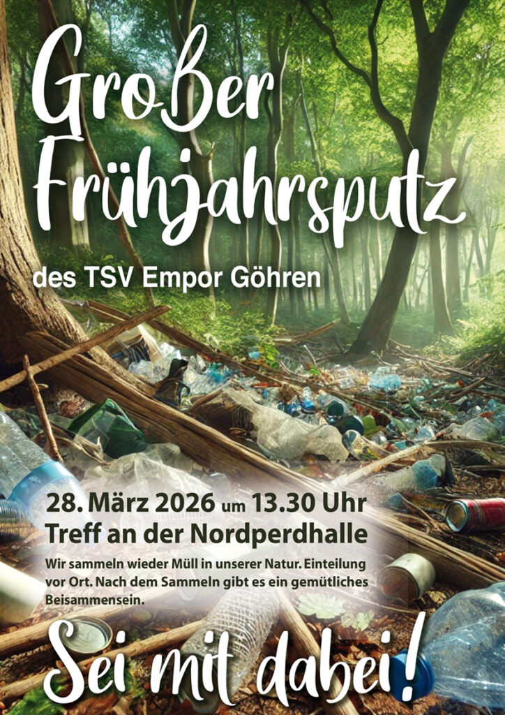 Wir treffen uns am Sonnabend, den 28. März um 13:30 Uhr vor der Nordperdhalle, um uns dann auf verschiedene Abschnitte rund um das schöne Ostseebad Göhren aufzuteilen und die Natur von Müll und Unrat zu befreien. Besonders erfreulich ist, dass wir es dieses Jahr wieder mit allen gemeinsam schaffen diese Aktion zu starten. Denn auch Freiwillige aus der Gemeinde und Umgebung treffen sich, um im Ort und rund um das Museum zu putzen. Sogar die Biosphäre hat an diesem tag ihre Umweltaktion. So steht der 28. März ganz im Sinne des Naturschutzes und der Gemeinnützigkeit. Diese Gemeinschaft wollen wir im Anschluss an die Arbeit, als fröhliches Vergnügen aus-